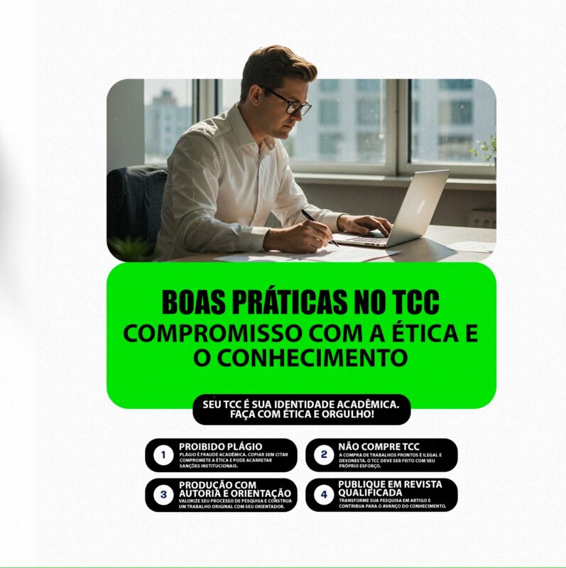 Plágio e compra de TCC não são atalhos — são riscos legais, acadêmicos e profissionais. Valorize sua trajetória e contribua para uma comunidade universitária mais íntegra e comprometida com a verdade científica.