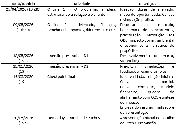 O espaço também atua como ambiente colaborativo de trabalho, permitindo mentorias, reuniões, pequenos eventos e troca de experiências entre estudantes, empreendedores e parceiros.
