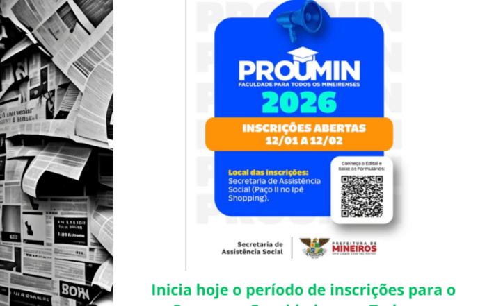 A Prefeitura de Mineiros anuncia a abertura das inscrições para o Programa Faculdade para Todos os Mineirenses (PROUMIN), uma iniciativa que reforça o compromisso do município com a educação e a inclusão social. O programa tem como objetivo ampliar o acesso ao ensino superior, oferecendo bolsas de estudo [...]