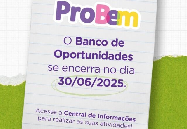 A OVG está em campanha de divulgação sobre o Banco de Oportunidades e seu prazo para cumprimento, que neste semestre será até dia 30/06/2025, com o objetivo de reduzir o número de desligamentos do ProBem por não realização das atividades semestrais. A chamada pode ser realizada para o link da [...]