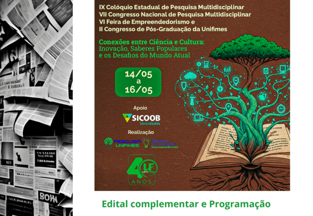 A Pró-Reitoria de Ensino, de Pesquisa e de Extensão (PROEPE) do Centro Universitário de Mineiros (UNIFIMES), conjuntamente com a Diretoria de Pesquisa, no uso de suas atribuições estatutárias e regimentais, torna público o presente Edital Complementar 01 ao Edital 01/2025/DIP/PROEPE, com algumas inclusões e modificações e programação completa para [...]
