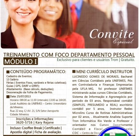 Acontece no próximo dia 25 na UNIFIMES, treinamento contábil oferecido pela Tron Informática