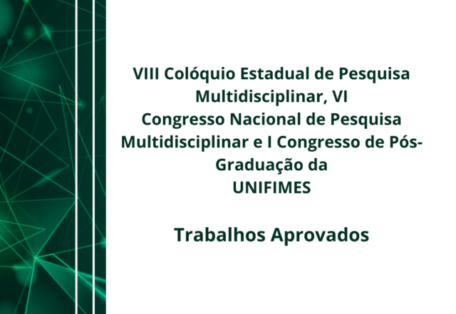 A comissão organizadora do VIII Colóquio Estadual de Pesquisa Multidisciplinar, VI Congresso Nacional de Pesquisa Multidisciplinar e I Congresso de Pós-Graduação da UNIFIMES, por meio de suas atribuições torna público o resultado dos Trabalhos Aprovados. Os trabalhos aprovados com correções deverão ser enviados via plataforma até o dia 01/08/2024 [...]