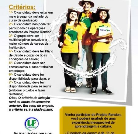 Venha participar do Projeto Rondon, você poderá usufruir de uma experiência inesquecível de aprendizagem e cultura.