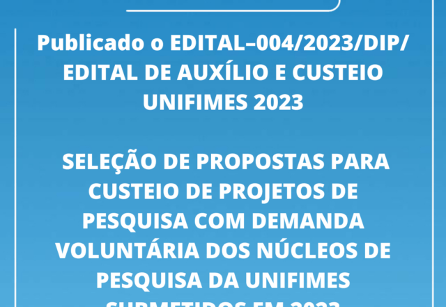 Publicado o EDITAL–004/2023/DIP/ edital de auxílio e custeio Unifimes 2023