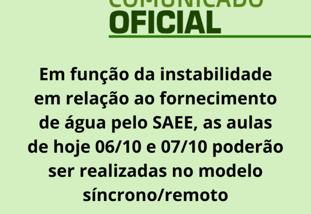 Comunicado sobre as aulas de 06 e 07 de outubro em função da instabilidade do fornecimento de água pelo SAAE