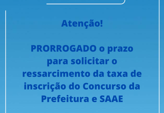 PRORROGADO o prazo para solicitar o ressarcimento da taxa de inscrição do Concurso da Prefeitura e SAAE