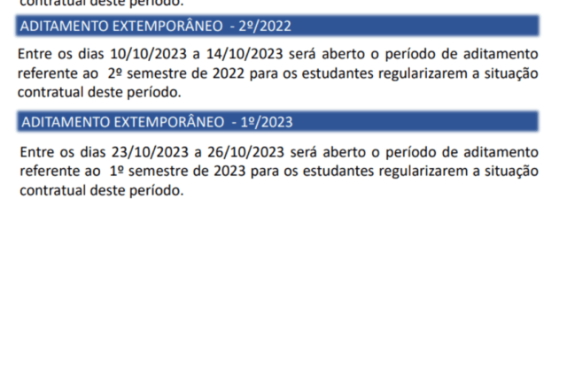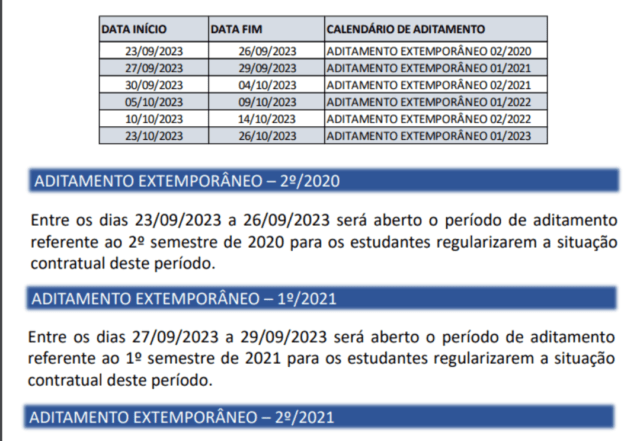 Novo Fies – Calendário de Aditamentos Extemporâneos