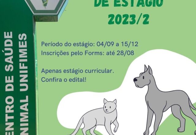 Estão abertas as inscrições para estágio obrigatório no Centro de Saúde Animal da UNIFIMES, para alunos regularmente matriculados do 6º ao 10º período do curso de Medicina Veterinária da UNIFIMES. O link para inscrições e demais informações estão no edital em anexo. Edital estágio CSA - 2023.2