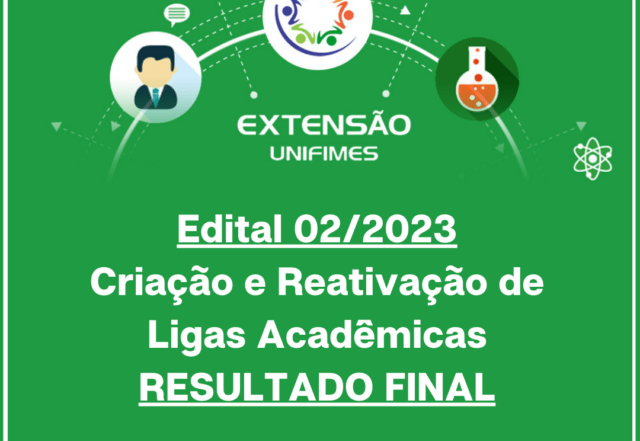 A Diretoria de Extensão, Assuntos Comunitários, Estudantis e Culturais – DEACEC da UNIFIMES publicou nesta sexta-feira, 11 de agosto de 2023, o Resultado FINAL do Edital 02/2023/DEACEC/EXTENSÃO – Apresentação de Propostas de Criação e Reativação de Ligas Acadêmicas dos Cursos de Graduação. As ligas que ficaram com resultado “Pendente” [...]