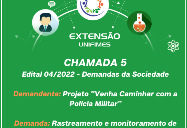 A Diretoria de Extensão, Assuntos Comunitários, Estudantis e Culturais (DEACEC) publicou a quinta chamada para apresentação de projetos que atendam demandas recebidas da sociedade, no âmbito do Edital 04/2022/DEACEC/EXTENSÃO. A chamada aberta visa atender a demanda do Projeto “Venha Caminhar com a Polícia Militar” para rastreamento e monitoramento de [...]