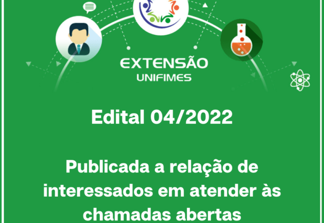 A Diretoria de Extensão, Assuntos Comunitários, Estudantis e Culturais (DEACEC) torna pública a relação de interessados(as) em apresentar projetos que atendam demandas recebidas da sociedade, no âmbito das Chamadas 1, 2, 3 e 4 do Edital 04/2022/DEACEC/EXTENSÃO. A DEACEC entrará em contato com os(as) docentes e servidores interessados(as) para [...]