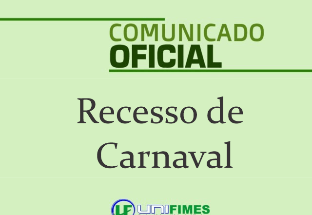 O Centro Universitário de Mineiros comunica que estará em recesso dos dias 26 de fevereiro a 02 de março. Retornaremos as atividades no dia 03/03 (quinta feira). Desejamos a todos um bom descanso.