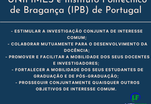 O Centro Universitário de Mineiros firmou convênio entre o Centro de Internacionalização e Mobilidade Acadêmica e o Instituto Politécnico de Bragança, localizado na cidade de Bragança (IPB) em Portugal. A UNIFIMES e o IPB comprometem-se, de acordo com os meios de que dispõem, a estimular a investigação conjunta de [...]