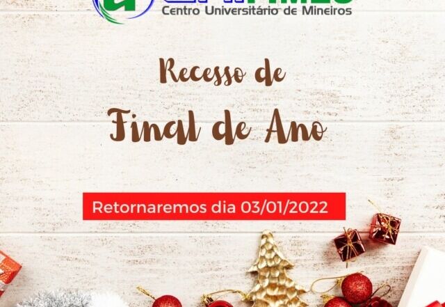A Reitoria do Centro Universitário de Mineiros - Unifimes vem a público comunicar que o recesso de Natal e Ano Novo será compreendido no período de 22 de dezembro de 2021 a 31 de dezembro de 2021. Durante este período não haverá atendimento em nenhum departamento da instituição. Todas [...]