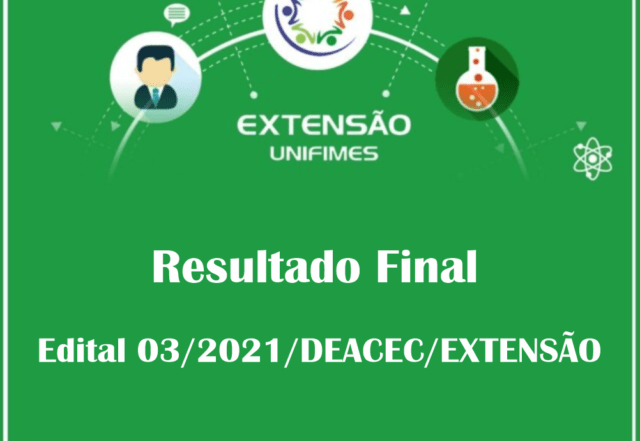 A Diretoria de Extensão divulgou o resultado final referente ao Edital 03/2021/DEACEC/EXTENSÃO que trata sobre a Apresentação de propostas de ações de extensão para o ano de 2022. O resultado pode ser acessado na página da Extensão no site www.unifimes.edu.br, em Editais de Extensão/Edital 03/2021/DEACEC/Extensão – Apresentação de propostas de [...]