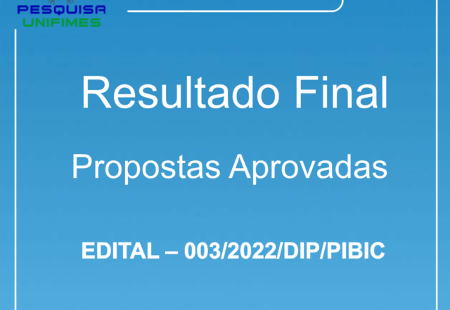 A Diretoria de Pesquisa divulgou o resultado final propostas aprovadas referente ao Edital 003-2022-DIP-PIBIC que trata sobre a Seleção de propostas de pesquisa e concessão de bolsas do programa de iniciação científica da UNIFIMES para 2022. O resultado pode ser acessado na página da Pesquisa no site www.unifimes.edu.br, [...]
