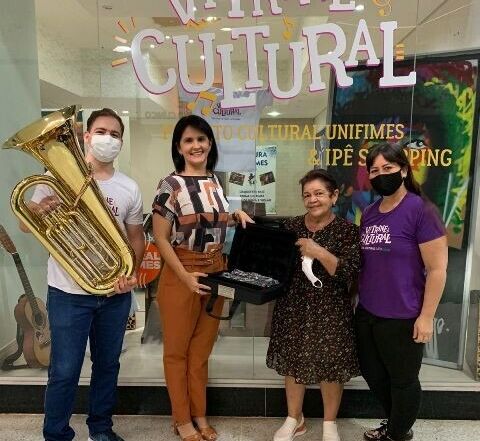 A reitora do Centro Universitário de Mineiros - UNIFIMES Profª Ma. Juliene Rezende Cunha em visita a Vitrine Cultural no Ipê Shopping esta manhã (31/08/2021), fez a entrega de dois instrumentos musicais, sendo eles, um Bombardão e uma Clarineta. Esses instrumentos foram concedidos pela FUNARTE via edital. Receberam os [...]
