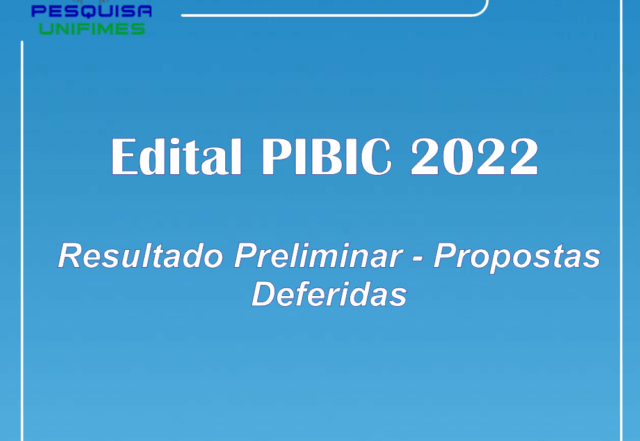 A Diretoria de Pesquisa divulga o resultado preliminar referente ao Edital PIBIC 2022, que trata sobre a Seleção de propostas de pesquisa e concessão de bolsas do programa de iniciação científica da UNIFIMES para 2022. O resultado pode ser acessado na página da Pesquisa no site www.unifimes.edu.br, em Editais [...]