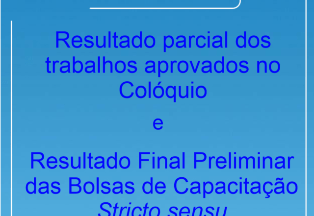 Resultado parcial dos trabalhos aprovados no Colóquio e resultado final preliminar para seleção de bolsas Stricto sensu