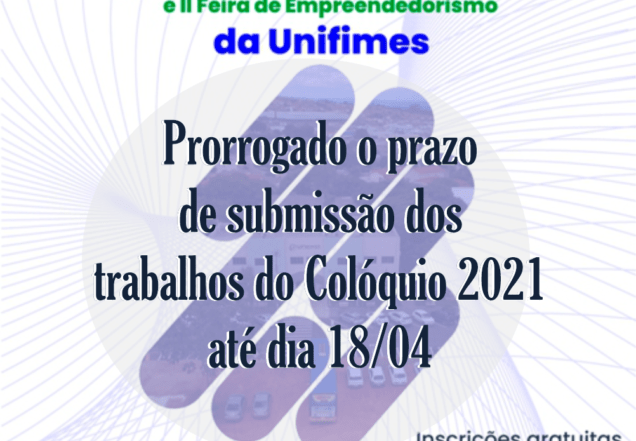 A Diretoria de Pesquisa do Centro Universitário de Mineiros através da Prof. Dra. Glicelia Pereira Silva, vem através deste informar que o prazo para submissão dos trabalhos do V Colóquio Estadual de Pesquisa Multidisciplinar, III Congresso Nacional de Pesquisa Multidisciplinar e II Feira de Empreendedorismo da UNIFIMES foi prorrogado [...]