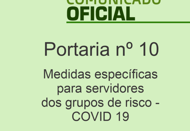 Divulgada portaria nº 10 de 07 de abril de 2021 que estabelece medidas específicas para os servidores que se encontram nos grupos considerados de risco de infecção pela COVID-19 no âmbito de suas unidades. A alteração no art. 9º da portaria 017 da Direção Geral de 31 de [...]