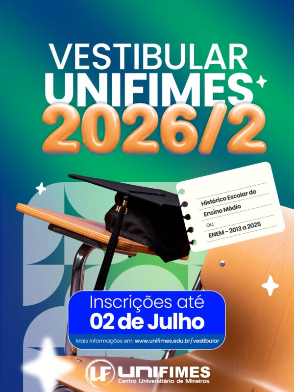 Já estão abertas as inscrições para o Vestibular UNIFIMES 2026/2, do Campus Mineiros, com vagas para diversos cursos de graduação.